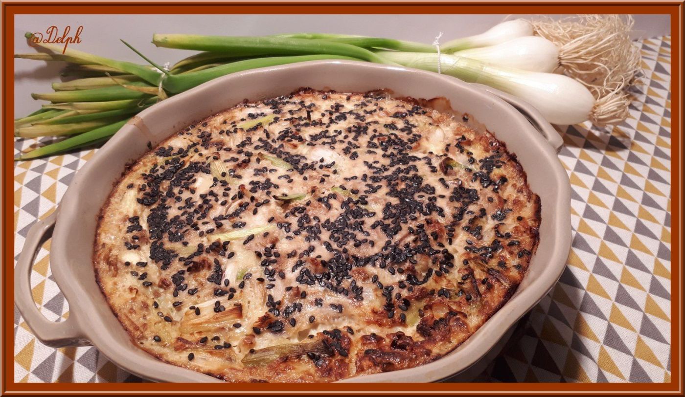 - Beurrer un plat à gratin puis y verser la préparation, parsemer de graines de sésame, enfourner pour 45 minutes et déguster tiède.