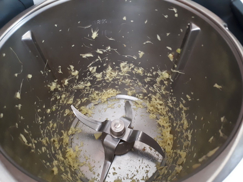 1. Mettre le gingembre dans le bol et hacher 10sec/vit6.
