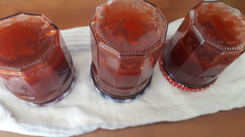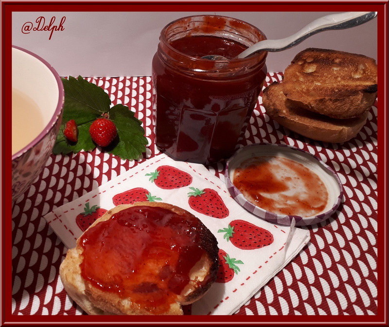 Jolie confiture tu as bien fait d’utiliser ce reste de rhubarbe je ne fait plus de confiture mes enfants font la leur .