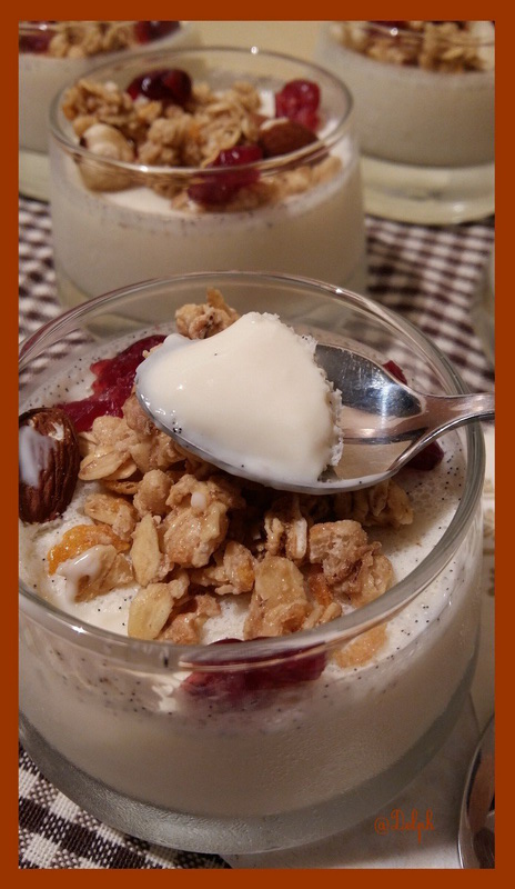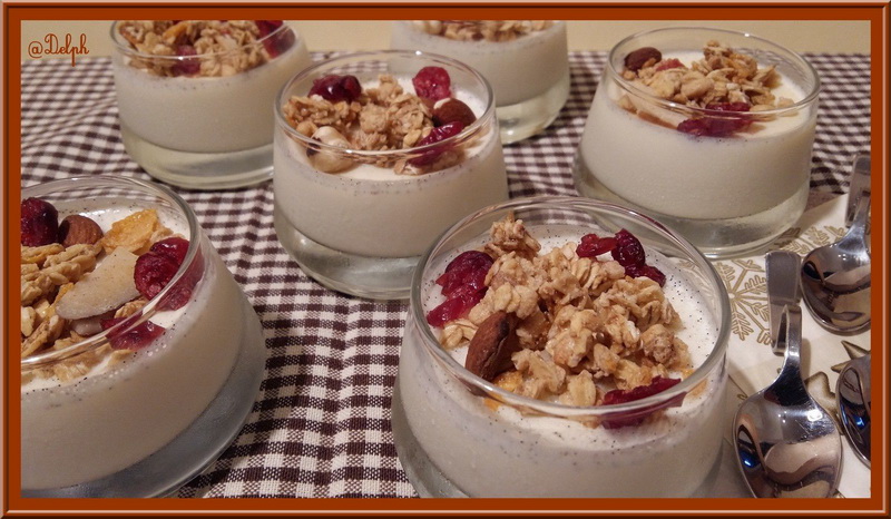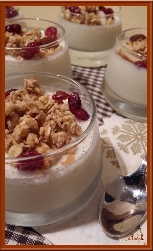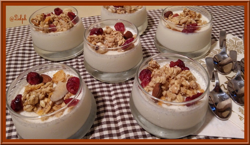 - Au moment de la dégustation, saupoudrer de muesli et de cranberries..
