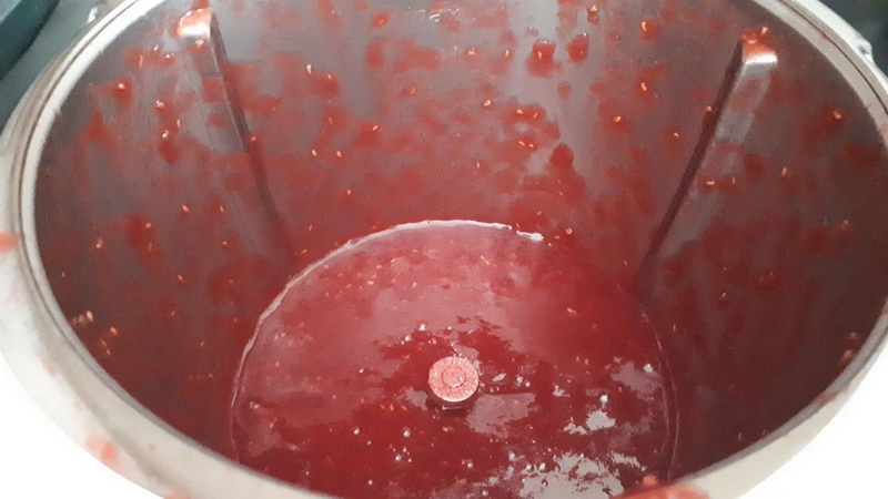 - Après macération, mettre les fruits et leur jus dans le bol puis faire chauffer 10min/120°C/vit mijotage sans le gobelet. Puis mixer 10sec/vit5. Laisser refroidir dans un saladier. Passer au tamis votre compote si vous ne souhaitez pas les petits grains. Rincer le bol et le sécher.