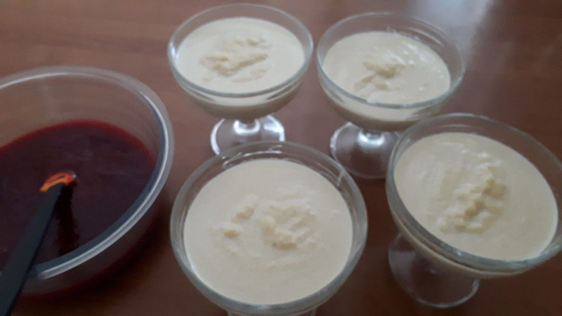 - Verser la semoule dans les coupes , laisser refroidir.