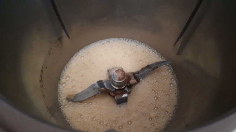 - Mettre les œufs et le sucre dans le bol puis mélanger 1 min/vit3. Ajouter ajouter la mascarpone, la purée de fruits, la farine et la levure puis mélanger 30sec/vit4.