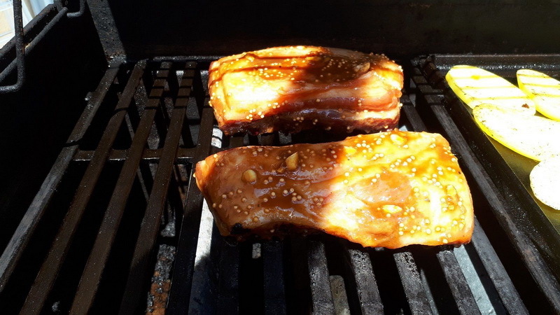 - Badigeonner le travers de porc avec cette marinade, laisser mariner environ 3 heures.