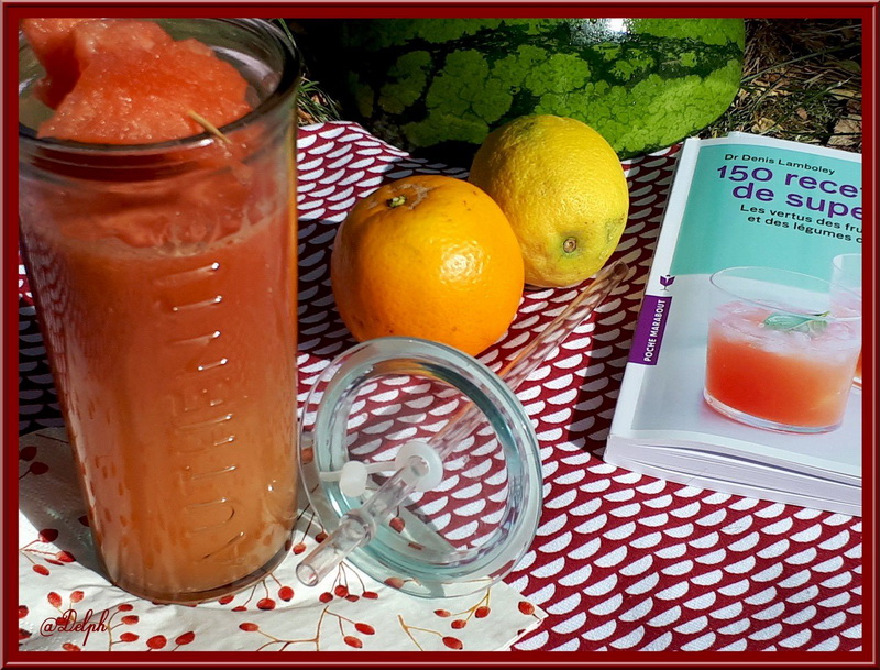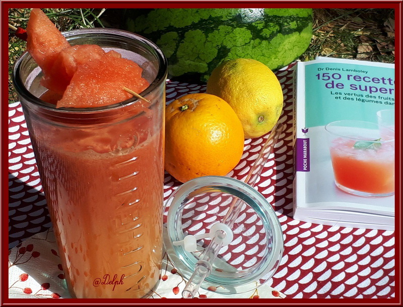 Voici un petit jus très rafraîchissant, qui est idéal pour l’été. Dépuratif, diurétique et légèrement laxatif il permet de réguler le transit intestinal. Je l’ai trouvé dans le livre  » 150 recettes de super jus » qui m’ a été généreusement offert par Natura sense.