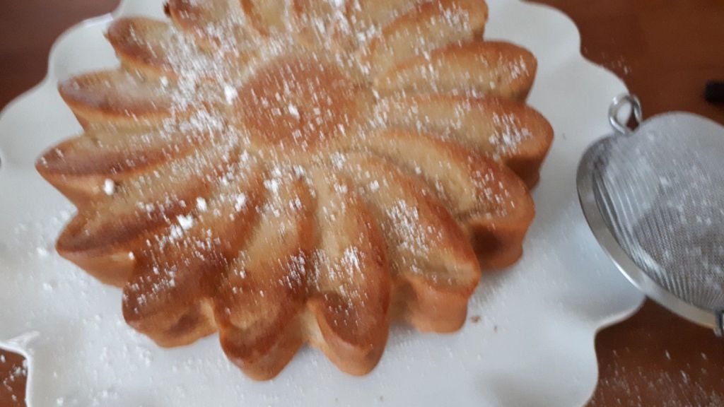 - Laisser refroidir avant de démouler, puis parsemer d’amandes effilées et de sucre glace.