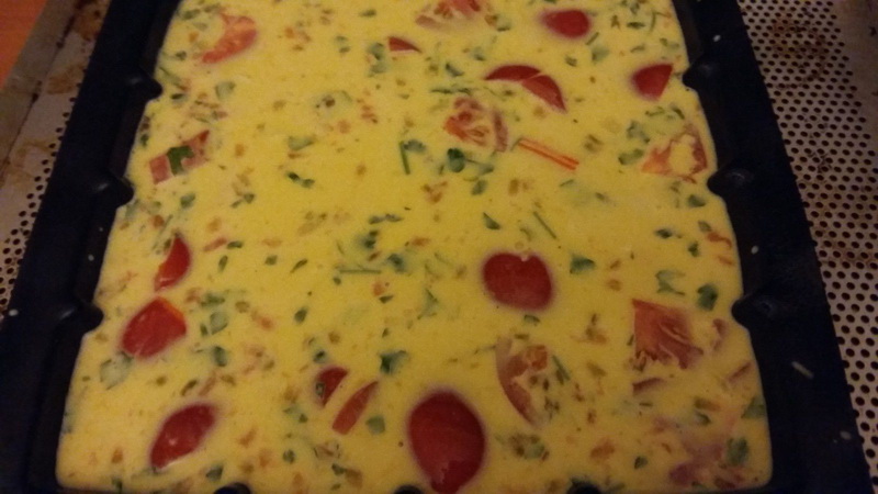 A la cuisson mes tomates ont rendu un peu de jus, j’ai enlevé le jus en faisant attention à ne pas faire tomber la quiche.