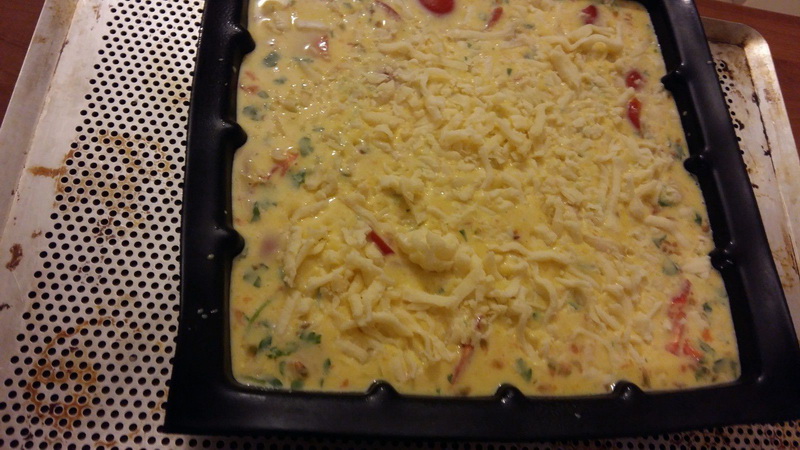 - Verser la préparation dans un moule, parsemer dessus la mozzarella râpé.
