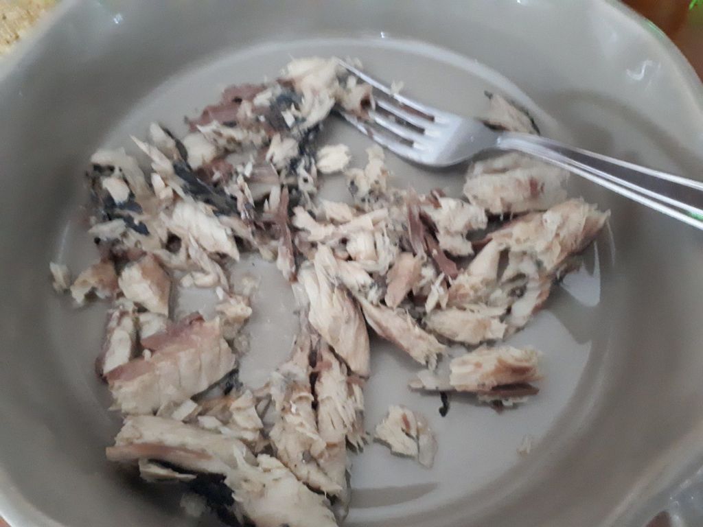 - A la sonnerie, bien égoutter vos légumes en vous aidant de votre panier cuisson, disposer vos légumes égouttés dans le fond de votre moule à manqué, puis ajouter votre maquereau que vous aurez égoutté et émietté, mélanger délicatement pour bien répartir le poisson.