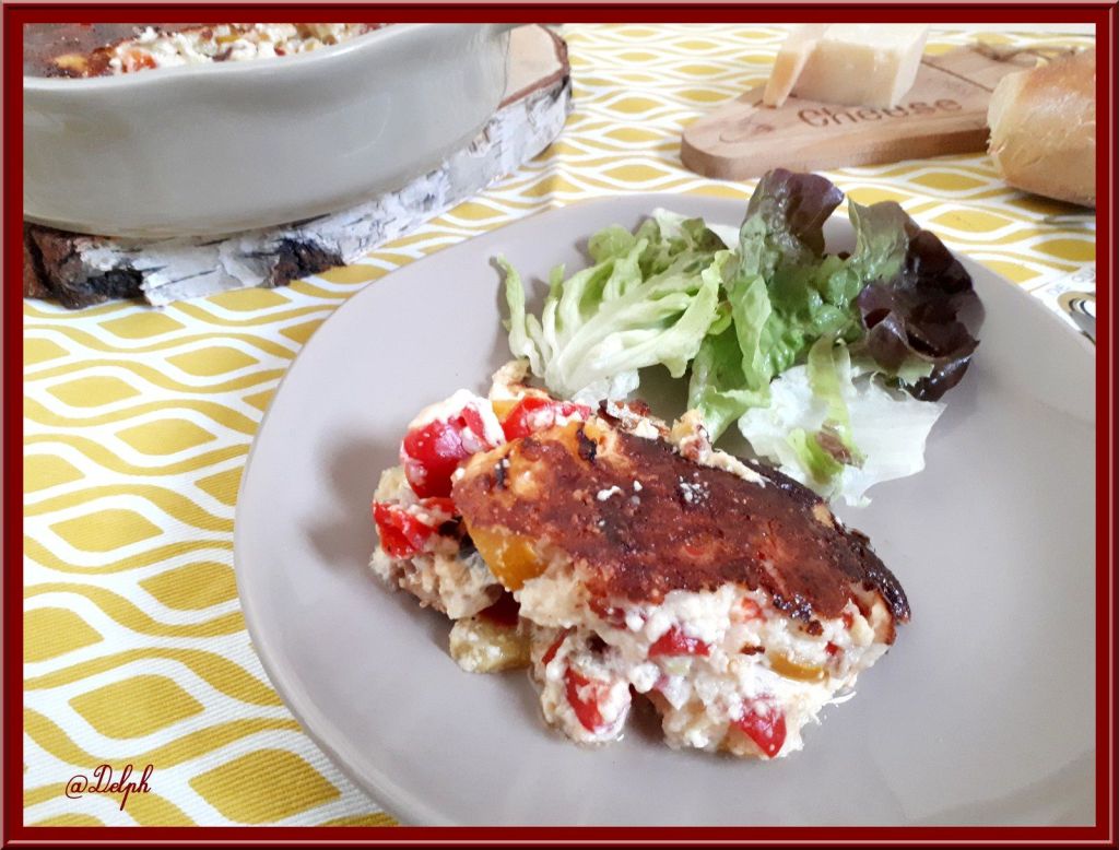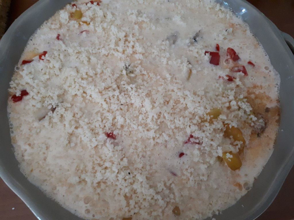 - Recouvrir les légumes et le poisson avec votre appareil, puis parsemer de parmesan râpé.
