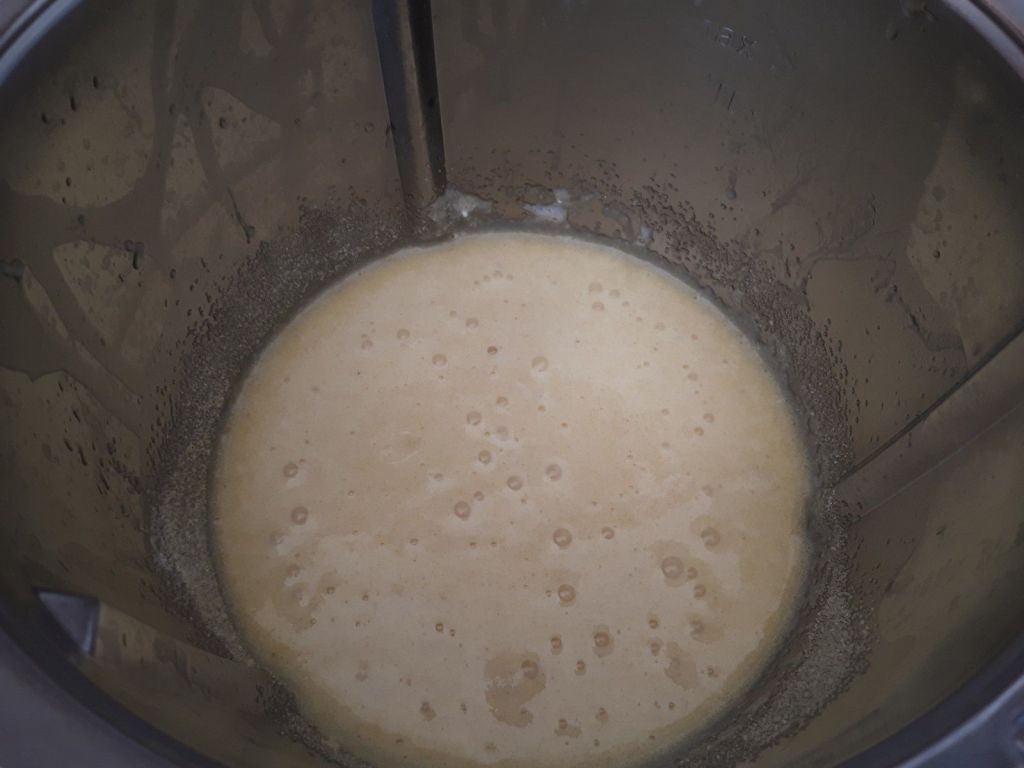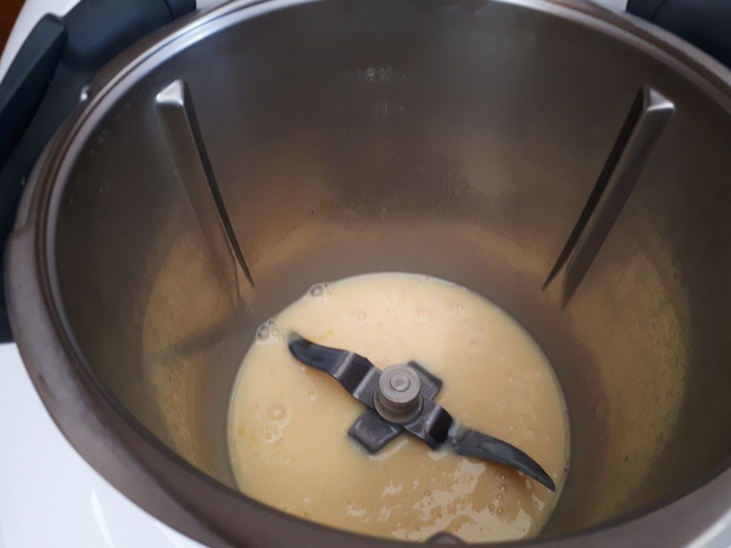 - Mettre dans votre bol, le lait, les œufs puis mélanger 20sec/vit3, ajouter l’huile mélanger à nouveau 20sec/vit3, incorporer la semoule, la levure et la fleur d’oranger et mélanger 20sec/couteau inversé/vit3.