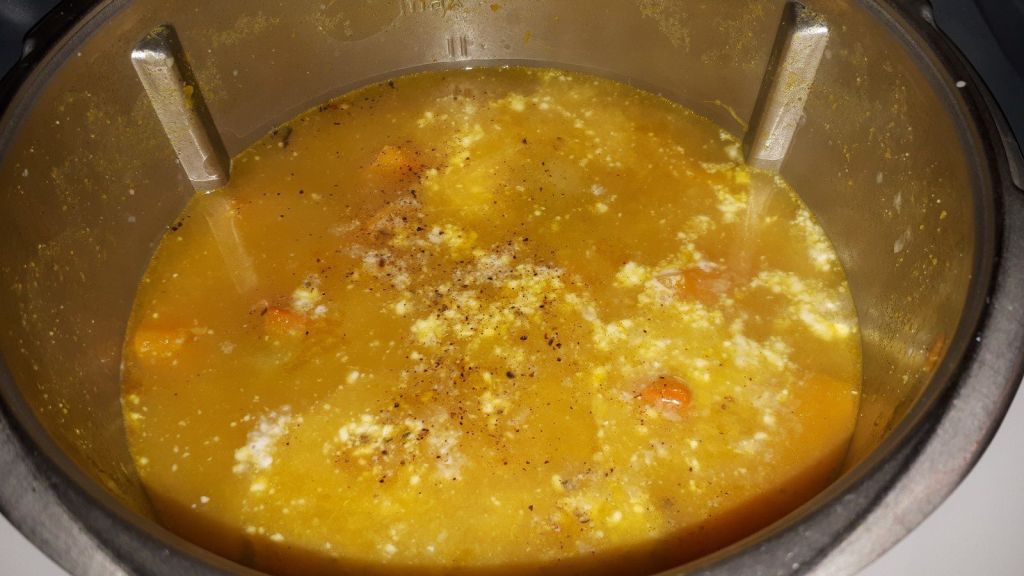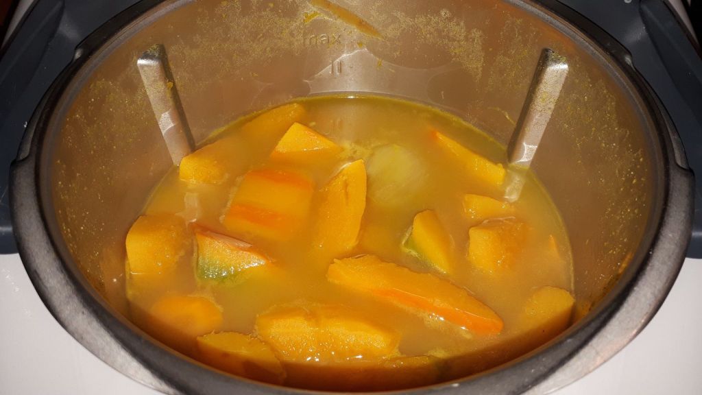 - Mettre tout vos légumes dans le bol, recouvrir avec le bouillon, mettre le cumin puis programmer 20min/varoma/vit mijotage.