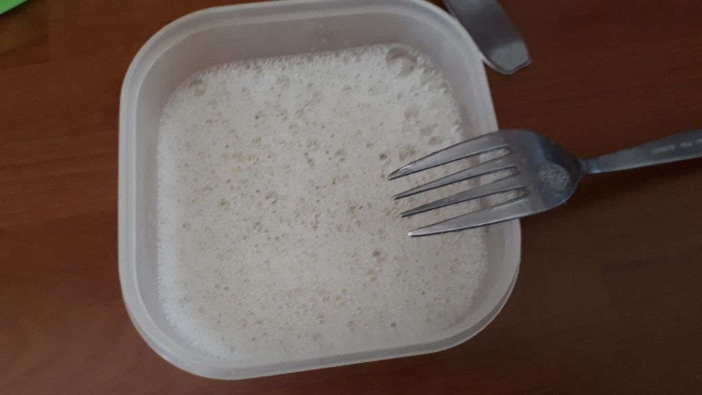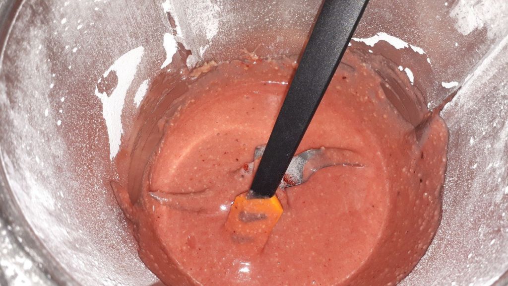 - Fouetter les blancs à la fourchette pour les faire mousser sans les monter en neige, les intégrer au mélange sec, puis incorporer votre purée, mélanger au fouet.
