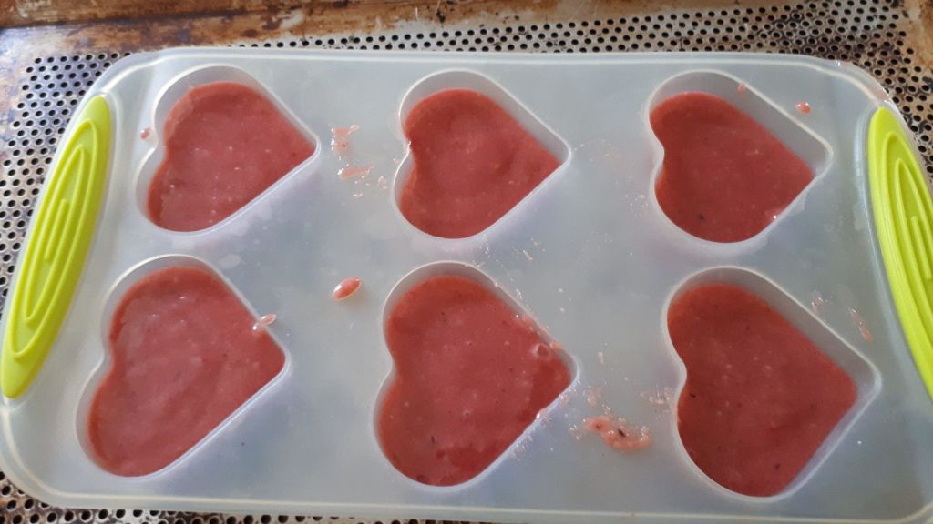 Une gourmandise qui pourra écouler vos blancs d’oeufs, cela ressemble à la base des financiers mais il n’y a pas de beurre, remplacé par la purée de fruits. Je vous avoue avoir acheté ma purée, bien sûr c’est meilleur fait maison mais cette année ma récolte des petites baies rouges a été bien maigre.