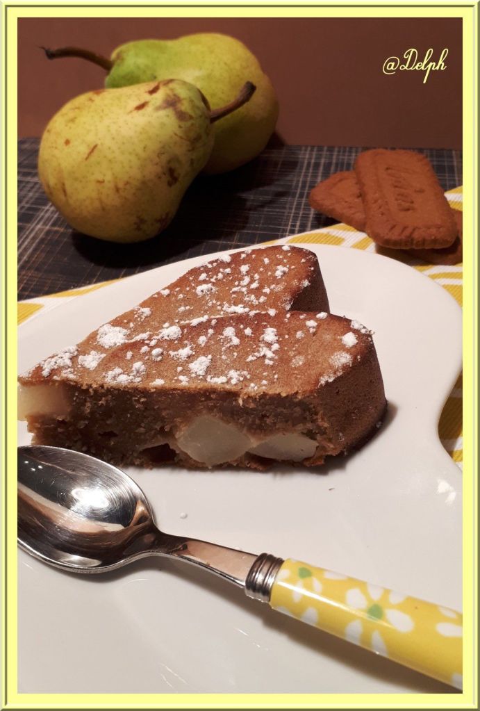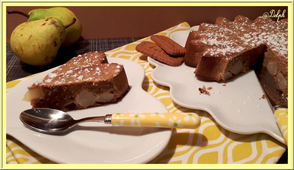 J’avais déjà testé l’association poires-spéculoos avec la tarte amandine aux poires et spéculoos, c’est très gourmand, j’ai donc réitéré avec cette recette que j’ai trouvée sur le blog de Stéphanie « Nos p’tits plaisirs« ..Il est parfait avec un bon thé ou café. Merci Stéphanie pour la recette, c’est vraiment tout simple et très bon.