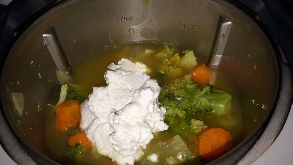 3. A la sonnerie, ajouter le chèvre frais puis mixer 20sec/vit7 à 9.