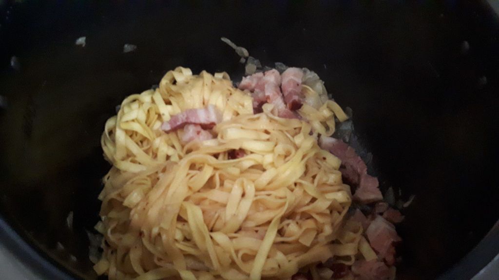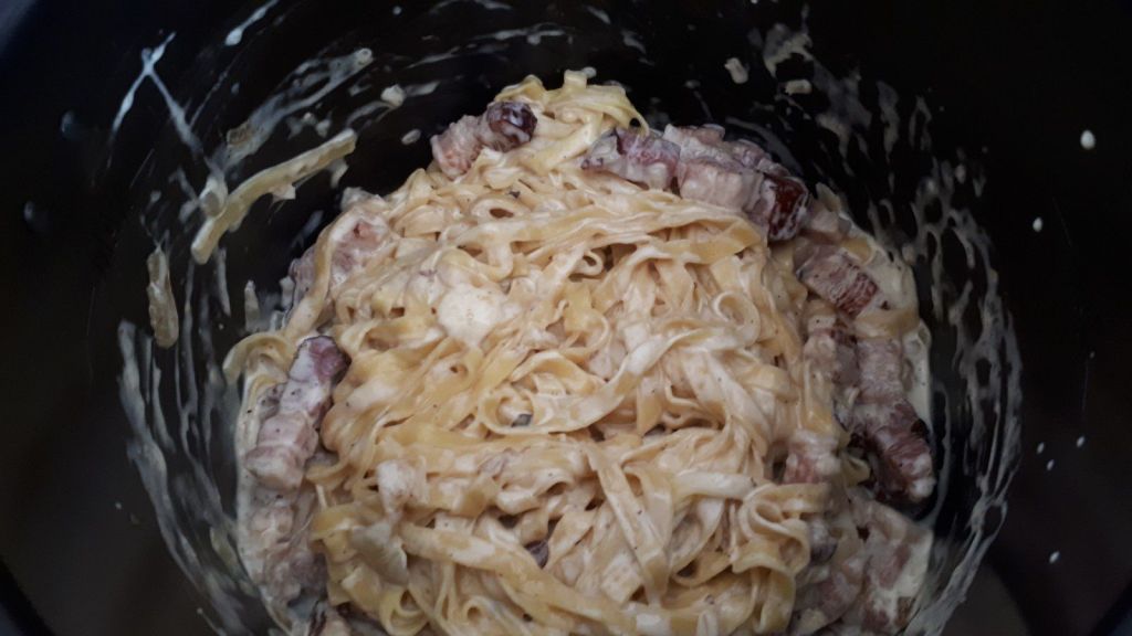 C’est mon fils qui a voulu que je teste les tagliatelles avec le Cookéo, je vous avoue avoir testé 3 fois ce plat avant qu’il me dise: « c’est celle là la bonne ». Un coup il trouvait qu’il n’y avait pas assez de poitrine, la deuxième fois, les pâtes n’étaient pas assez al dente, j’ai noté toutes ces remarques pour que cela lui plaise..Et ouf enfin on arrive au bon résultat. Depuis il me la réclame au moins une fois par semaine..Ce n’est pas compliqué de lui faire plaisir.