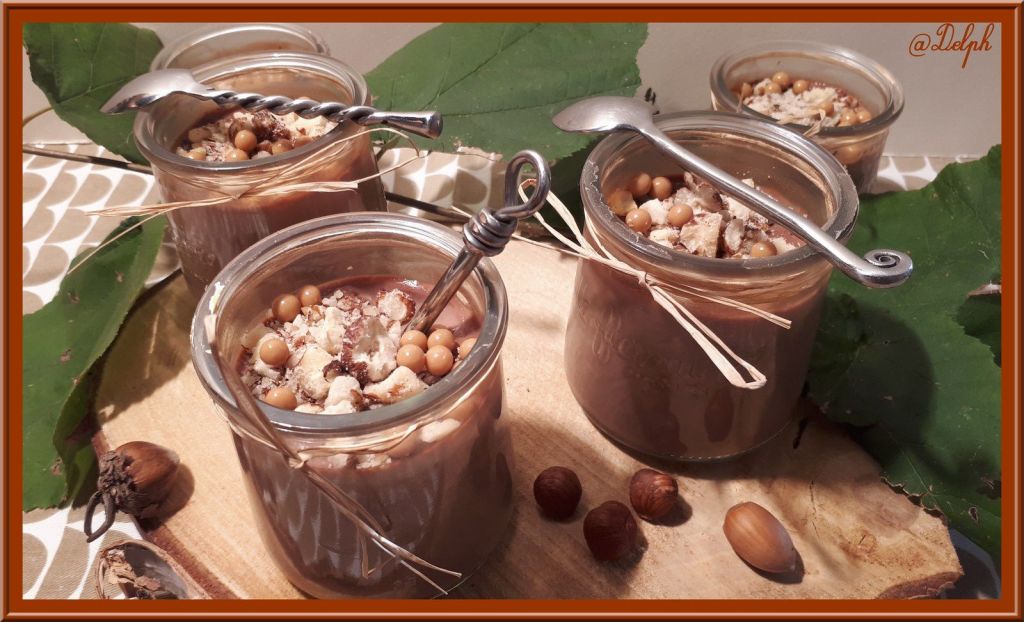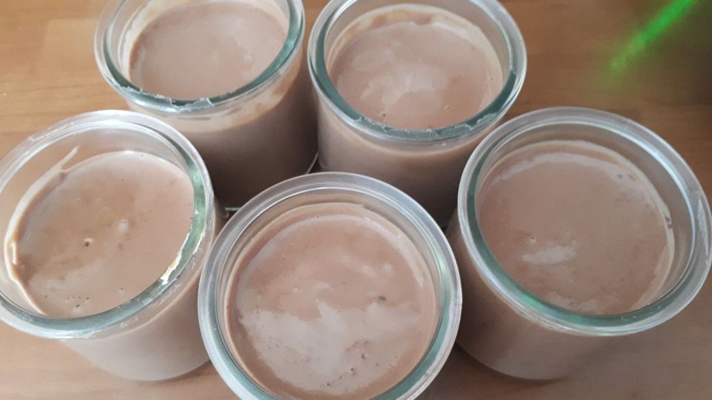 Voici des petites crèmes au chocolat qui ressemblent un peu à la texture des célèbres crèmes Danette. J’ai choisi un chocolat noir à 70%, le goût reste plus longtemps en bouche je trouve. J’ai mis de la crème de riz mais si vous n’en avez pas vous pouvez la remplacer par de la maïzena.