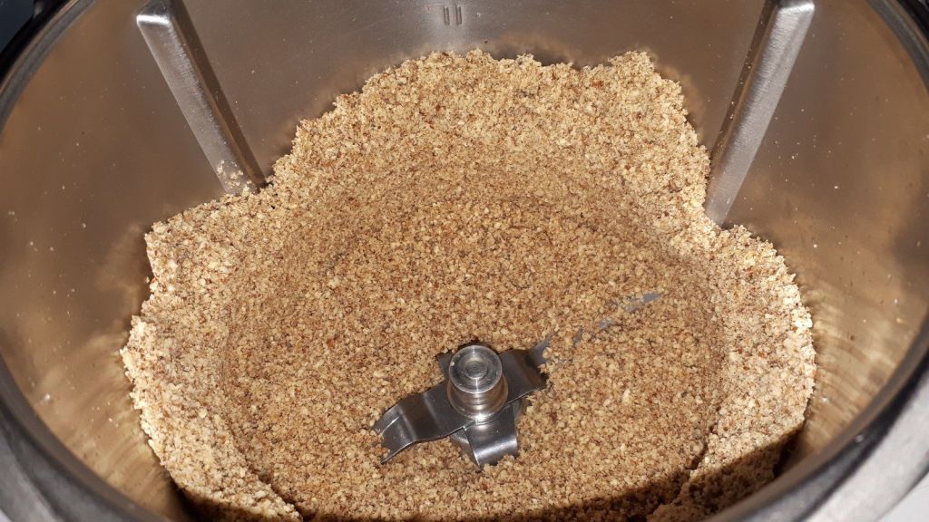 - Ajouter la farine et le mélange noix-sucre mixés puis mélanger 30sec/vit3.