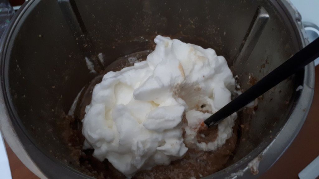 - Mettre les blancs dans le bol puis donner deux coups de turbo, insérer le fouet et monter les blancs en neige 4min/vit3,5 sans le gobelet doseur. Réserver les blancs, inutile de rincer le bol.