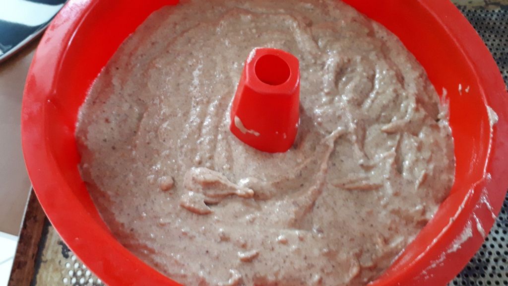 - Ajouter le beurre et le café encore chaud sans cesser de battre. Verser la farine, mélanger à l’aide d’une spatule, ajouter le mélange noix-sucre mixés et mélanger encore.