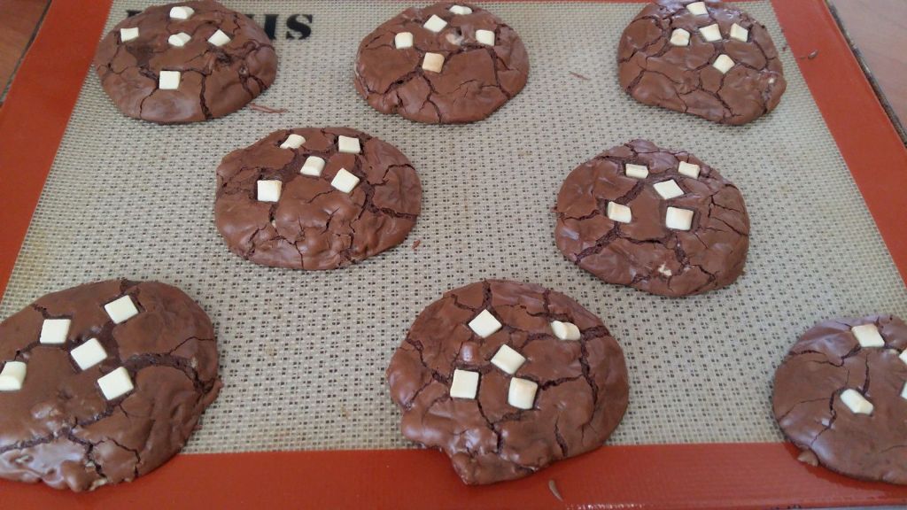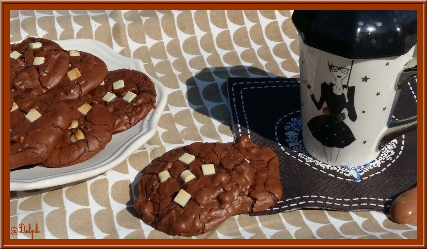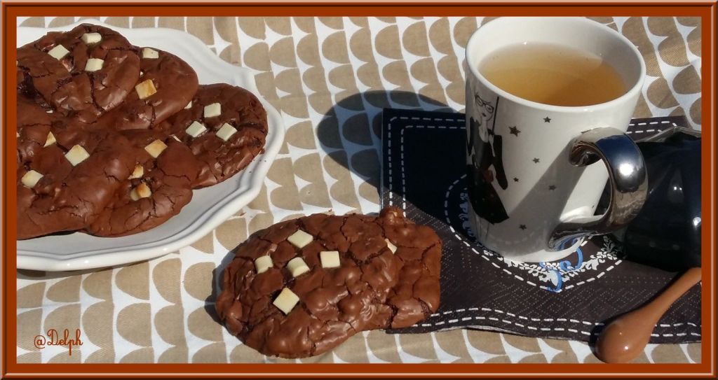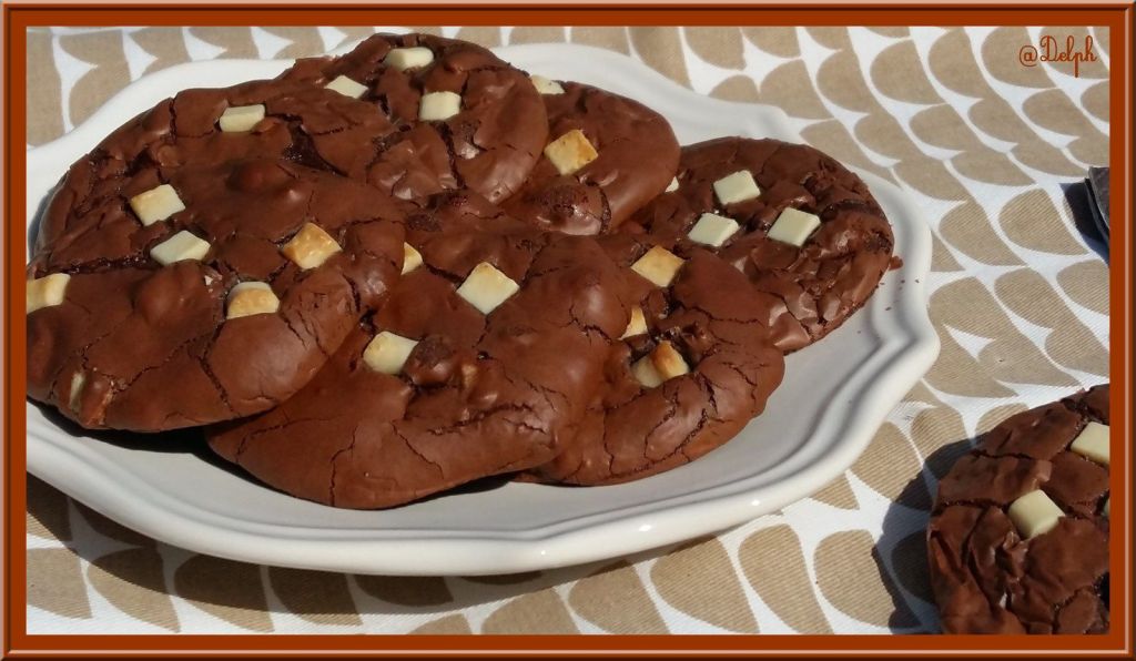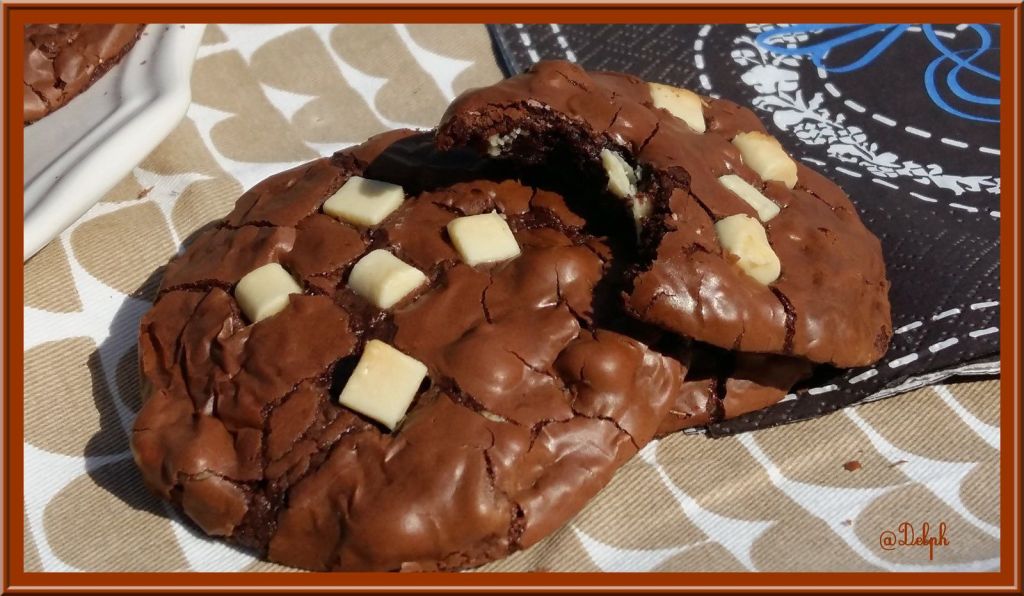 Cela faisait longtemps que j’avais envie de tester ces cookies bien gourmands, je les avais repéré chez Novice en Cuisine, et encore chez Yumélise…Je suis très faible face au chocolat, je n’ai pu résister, il a fallu que je les réalise pour les croquer…Il sont terribles..