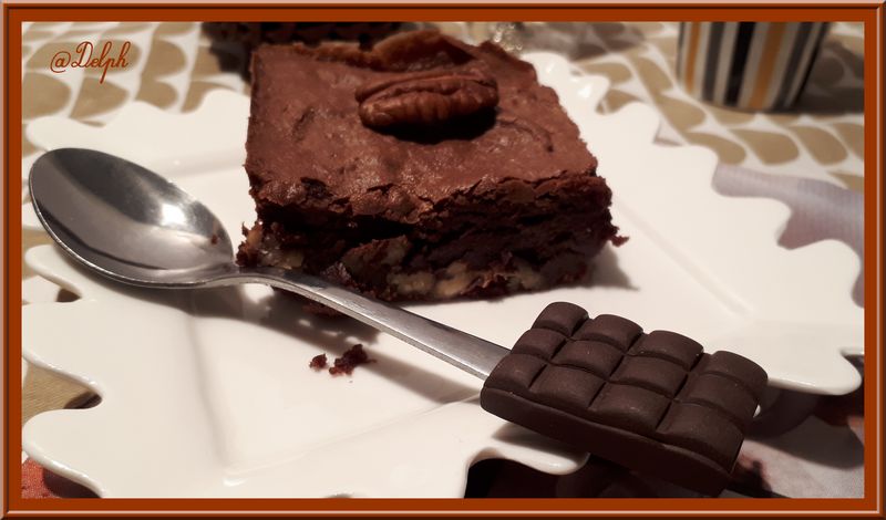 J’ai choisi une recette bien gourmande de chez « Nos p’tits plaisirs« , avec des noix de pécan que j’apprécie beaucoup en pâtisserie.