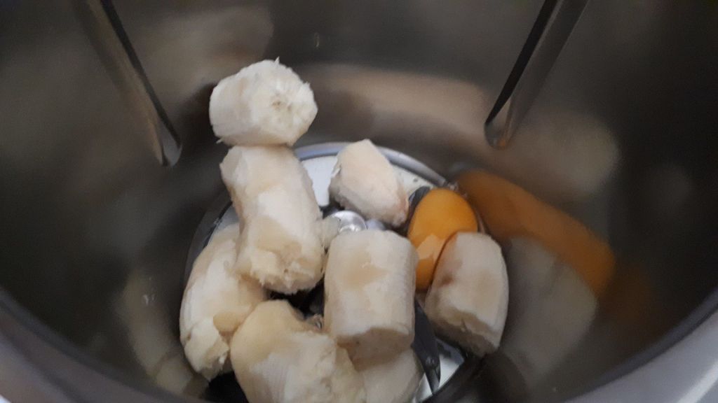 - Mettre les bananes et l’œuf dans le bol mélanger 30sec/vit3.