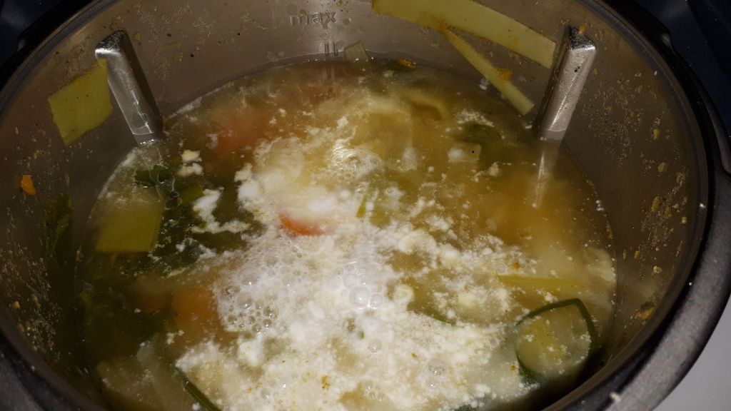 - A la sonnerie, ajouter le lait de coco, assaisonner à votre goût puis mixer 30sec de la vit 6 à 9.
