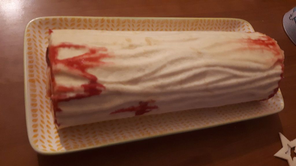Je vous conseille de démouler et décorer votre bûche au dernier moment, car si vous la sortez de votre moule à bûche trop en avance elle risque de s’affaisser.
