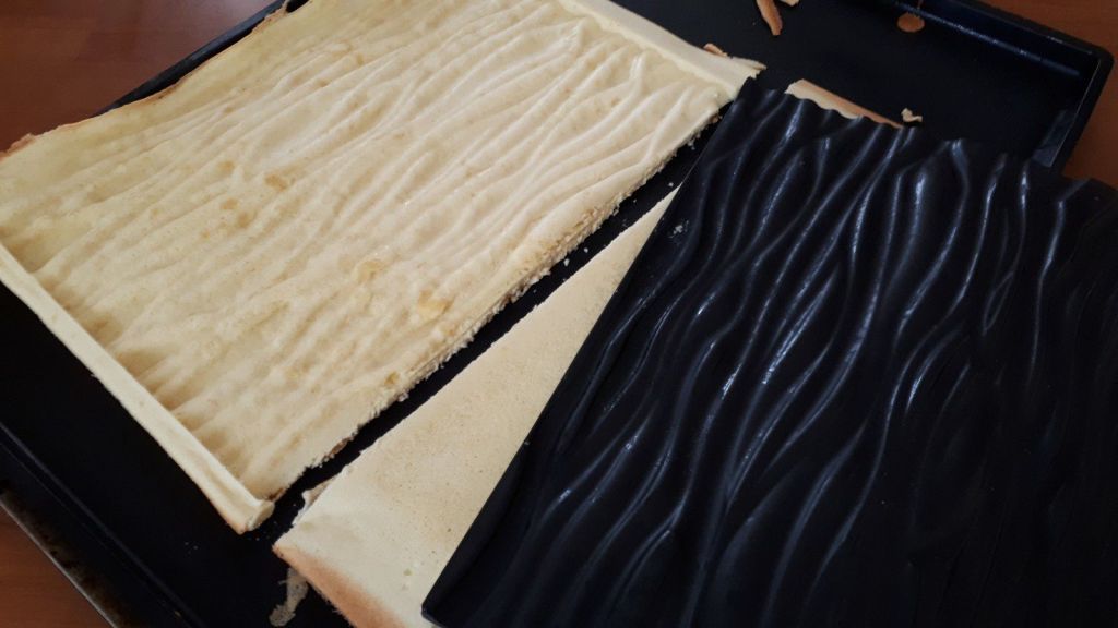 - Mettre votre tapis relief sur votre plaque à génoise, puis verser votre préparation sur le dessus.