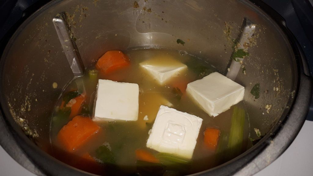 - A la sonnerie, ajouter les carrés de fromage fondu puis mixer 30sec de la vit 6 à 9.