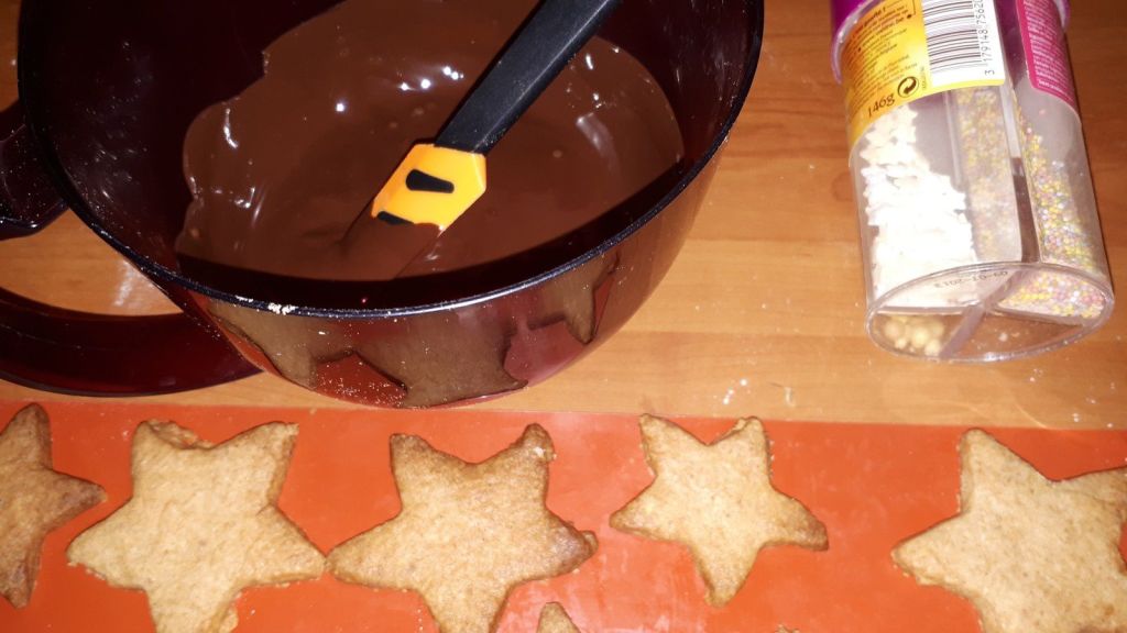 - Tremper les biscuits dans le chocolat fondu puis parsemer de petits décors.