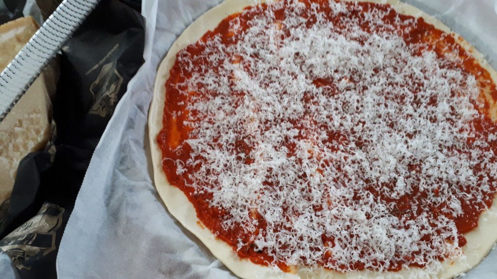 - Saupoudrer de basilic séché, puis râper votre parmesan avec votre microplane et le parsemer sur le dessus.