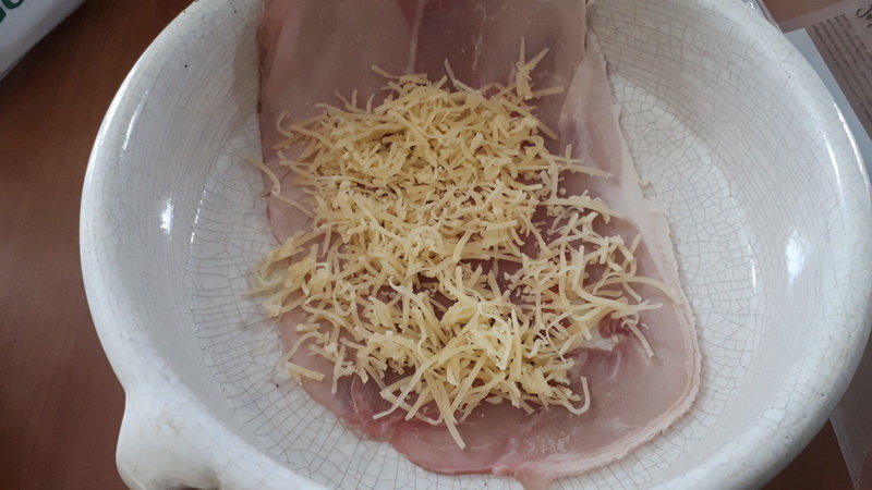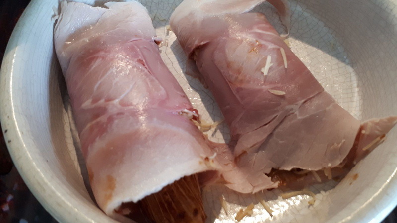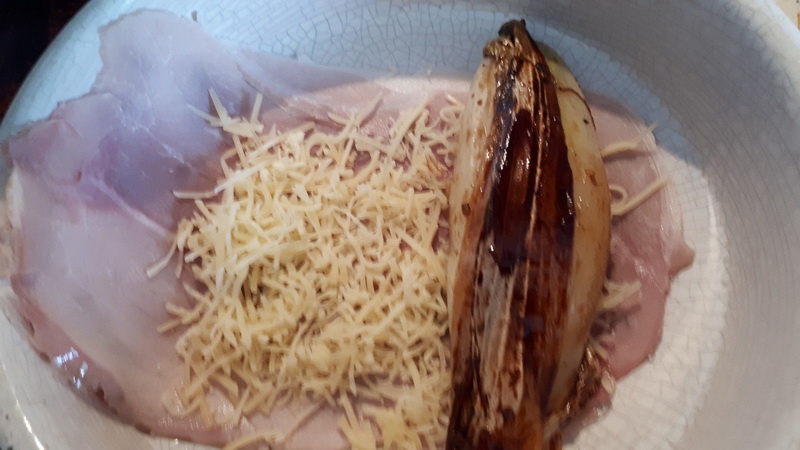 - Une fois cuite, mettre du gruyère sur toute la surface de la tranche de jambon, déposer la moitié de l’endive sur un bord du jambon, puis rouler. Faire de même avec l’autre moitié.