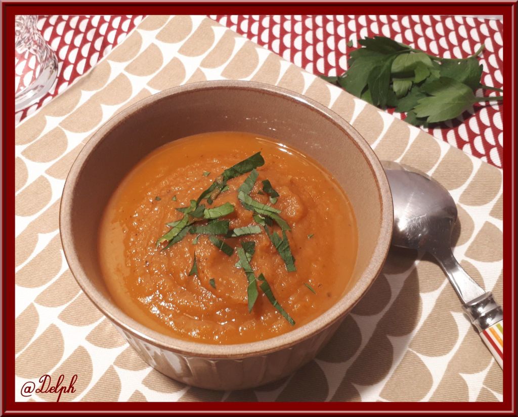 Voici un soupe détox qui est la bienvenue après les fêtes. Je mets un peu d’herbes de Provence pour qu’elle soit délicatement parfumée au goût du soleil.. Je l’ai réalisée avec mon Thermomix, mais vous ferez aussi bien avec une cocotte et un mixeur plongeant.