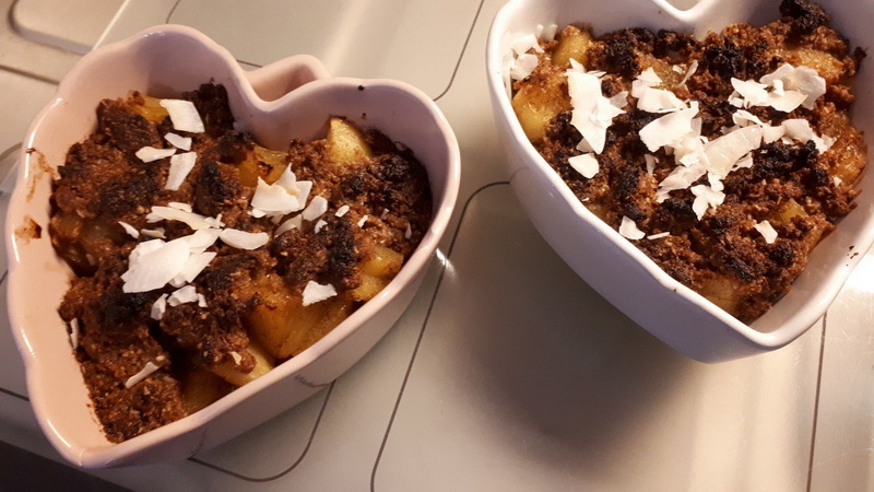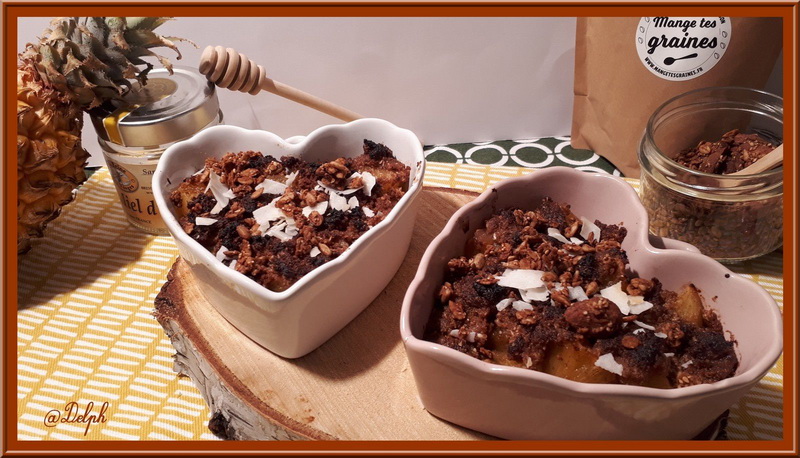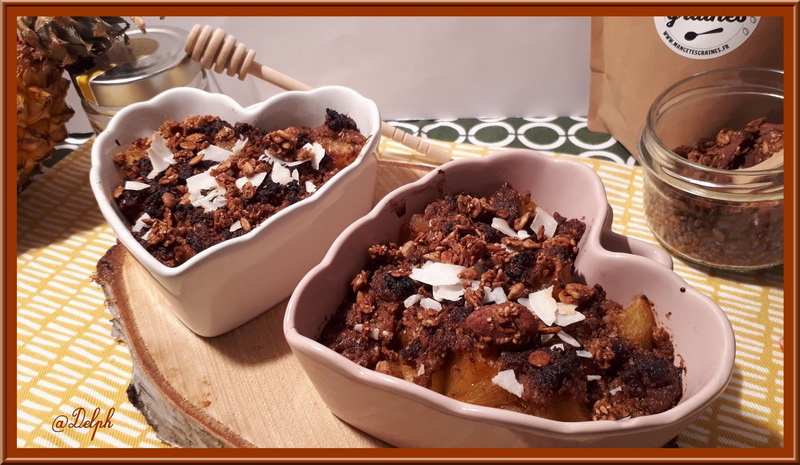 J’ai reçu un beau colis de fruits exotiques de l’île de la Réunion par un ami de mon mari, il y avait 3 beaux ananas Victoria. J’en ai dégusté un, en faisant ce crumble tout simple que j’ai déniché sur le site de WW.