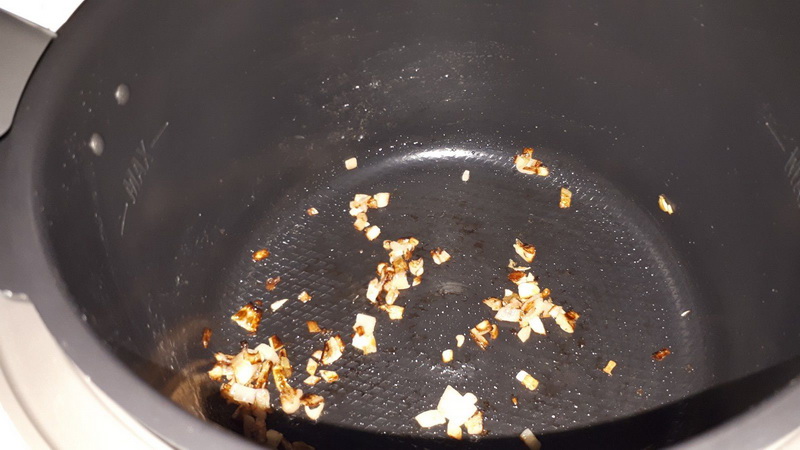 - Mettre l’huile d’olive et dès le préchauffage du mode dorer, mettre l’échalote dans la cuve et laisser dorer 1 minute en remuant.