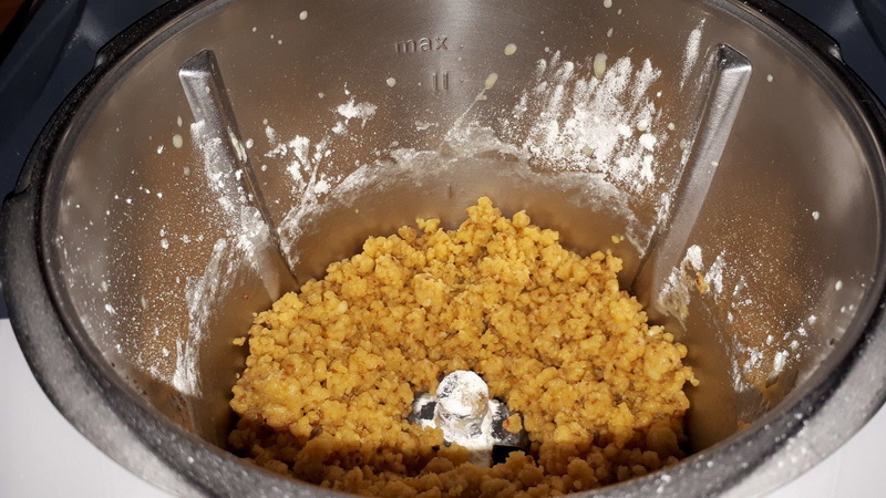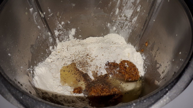 - Ajouter la farine, l’œuf, la moutarde, l’eau, le sel, le poivre et mélanger 15sec/vit3 pour obtenir une boule de pâte.