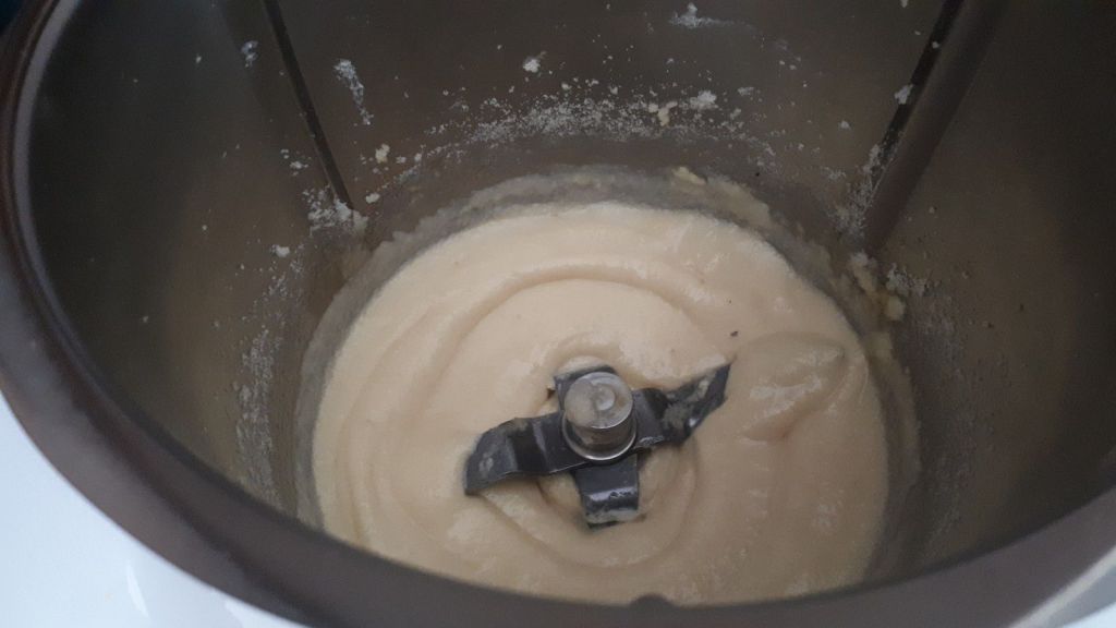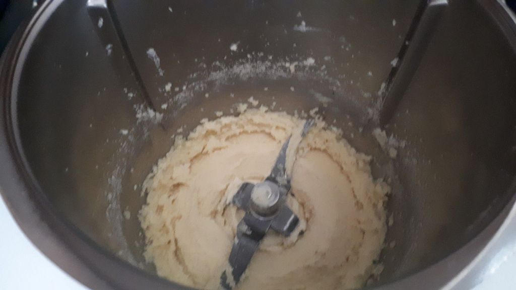 - Préparer la crème d’amandes, mettre le beurre coupé en morceaux et le sucre puis mélanger 40sec/vit3, ajouter la poudre d’amande et mélanger 30sec/vit3, programmer 40sec/3 puis par le trou du couvercle mettre les œufs un par un. Mettre dans une poche à douille puis au frais, le temps d’abaisser votre pâte feuilletée.