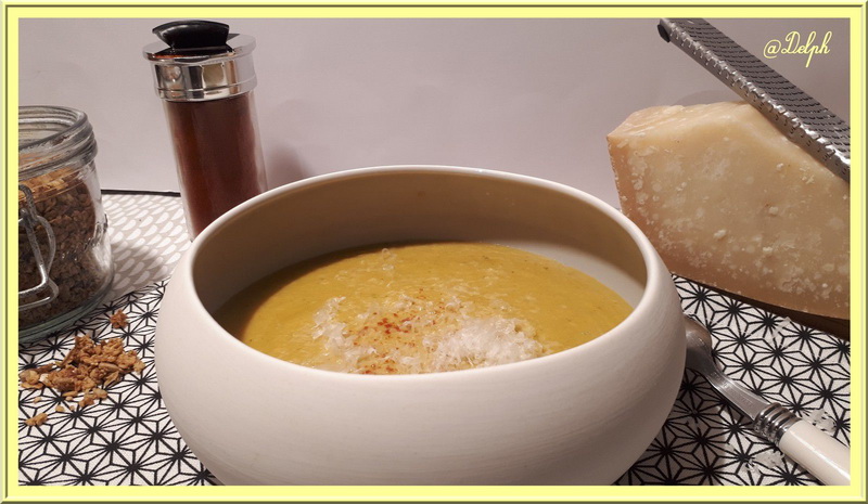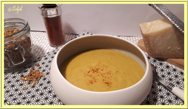 - Dès la cuisson des légumes, donner un bon coup de bras de plongeur ou autre mixeur, à ce moment ajouter le lait concentré non sucré, une pincée de paprika ( ou plus selon les gouts) en continuant de mixer. Si vous souhaitez un velouté plus liquide ajouter un peu de bouillon de légumes.
