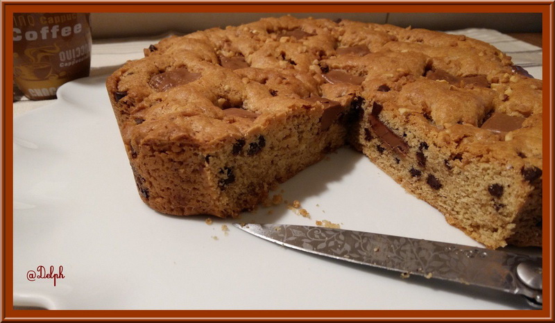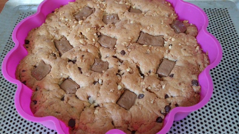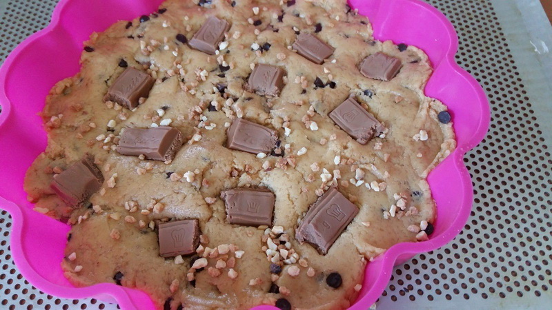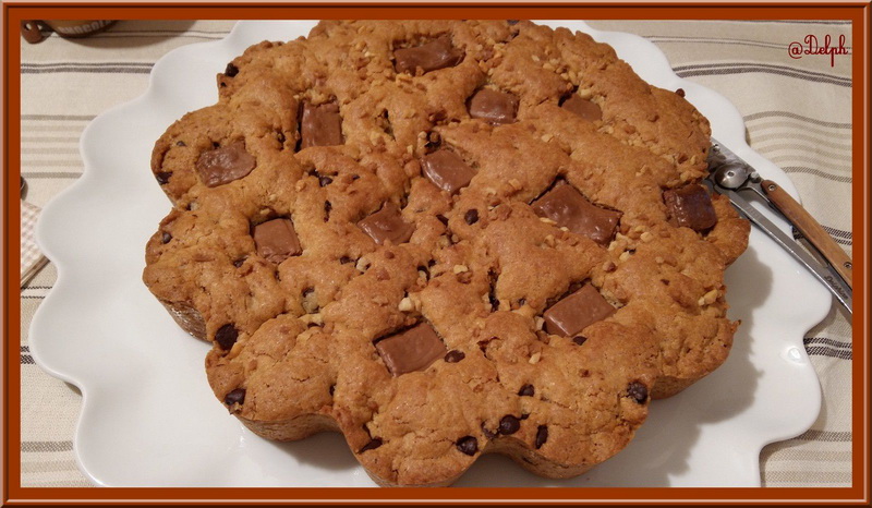 .A la maison nous adorons les cookies, surtout mon fils cadet, alors pour lui faire plaisir je lui ai préparé ce cookie géant que j’ai trouvé sur le joli blog « Merveilles et gourmandise«