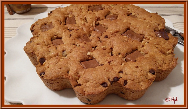 .A la maison nous adorons les cookies, surtout mon fils cadet, alors pour lui faire plaisir je lui ai préparé ce cookie géant que j’ai trouvé sur le joli blog « Merveilles et gourmandise«