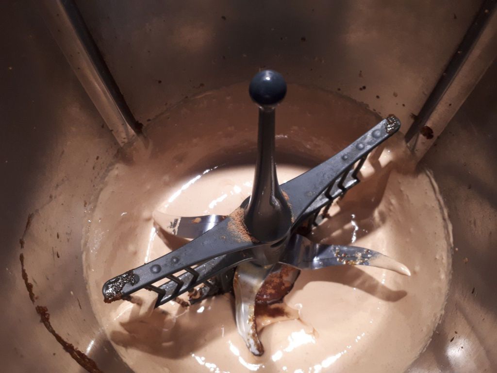 - Ajouter l’œuf entier, le mascarpone, la crème fraîche, le beurre fondu, ainsi que le jus des deux citrons, et le rhum. Mélanger 30sec/vit3.