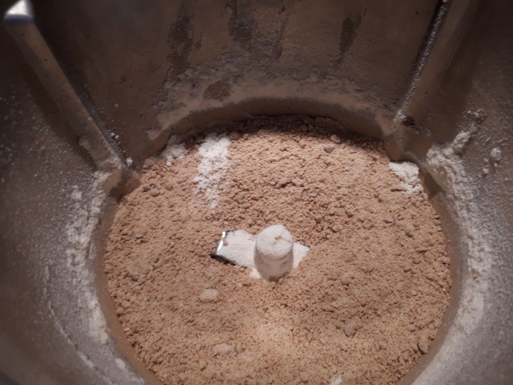 - Insérer le fouet dans le bol, mettre les jaunes d’œuf et le sucre puis fouetter 1min/Vit3, ôter le fouet, ajouter la farine, la levure et la pincée de sel, les zestes d’un des deux citrons puis mélanger 30sec/vit3.