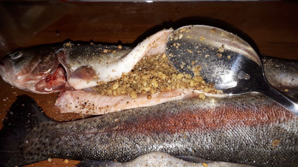 - Farcir l’intérieur des truites et les disposer dans un plat. Arroser des jus de citron, les recouvrir avec le reste de Sumac et poudre de noix. Couvrir et réserver 30 minutes au frais.