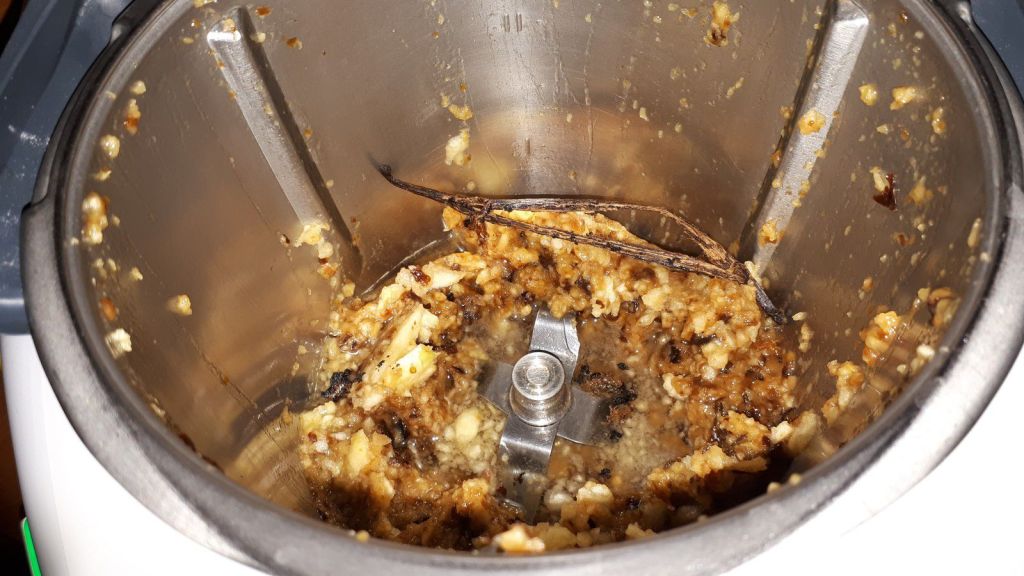 - A la sonnerie, ôter la gousse de vanille, sans vous brûler et mixer 15sec/vit8.