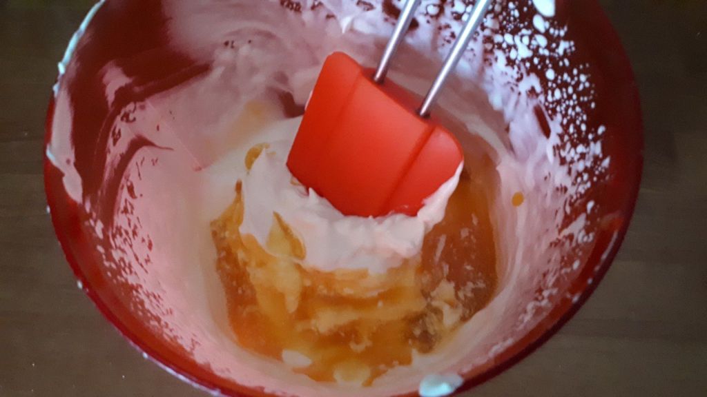 - Battre les jaunes et les ajouter aux blancs montés.