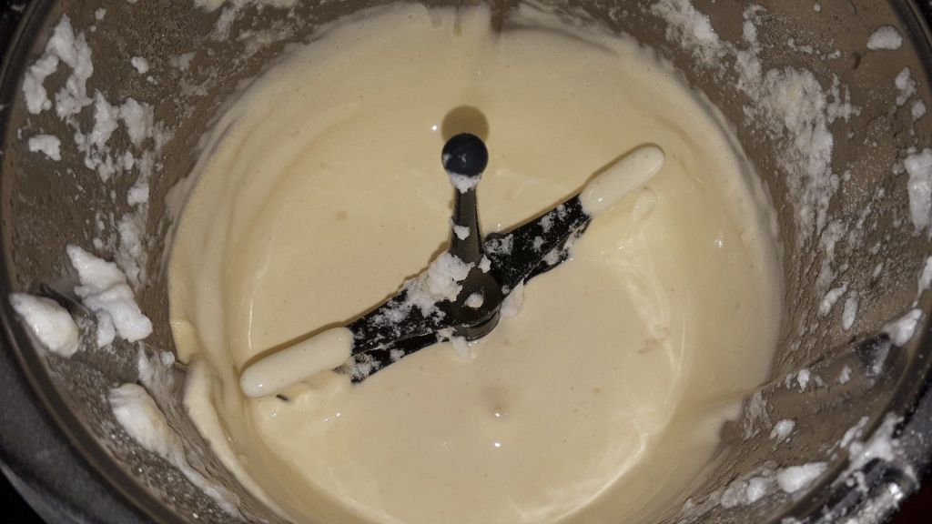 - Lorsque la purée commence à gélifier, battre la crème froide en chantilly, j’utilise mon speedy chef.