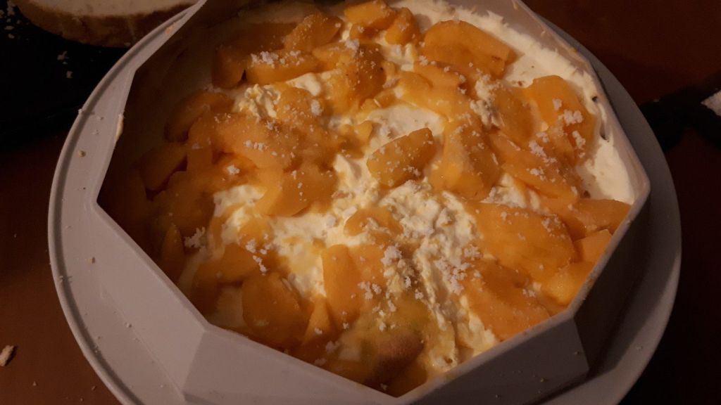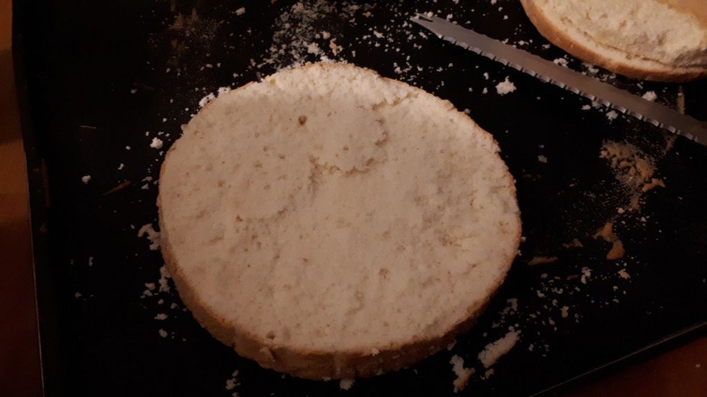 - Avec un pinceau imbiber la génoise mais pas trop de sirop, puis placer la génoise sur les mangues coupées.